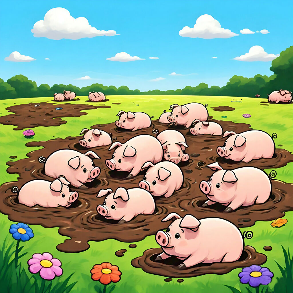 Step into a world where happiness oinks loud and proud! Mud Party: Joyful Pigs in Blooming Pastures captures a whimsical moment of pure delight as a cheerful herd of cartoon-style pigs revels in a muddy playground surrounded by vibrant wildflowers and lush greenery. This AI-generated artwork celebrates the carefree spirit of animals, reminding us that joy often lies in the simplest pleasures. Inspired by childhood memories of farm visits and the universal charm of muddy mischief, this piece blends humor, warmth, and nature in a way that’s perfect for kids’ spaces, playful decor, or educational materials.