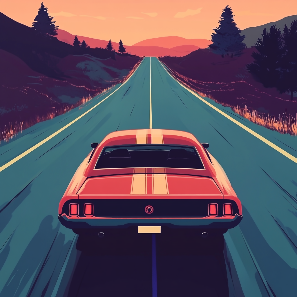 Muscle car at endless road
