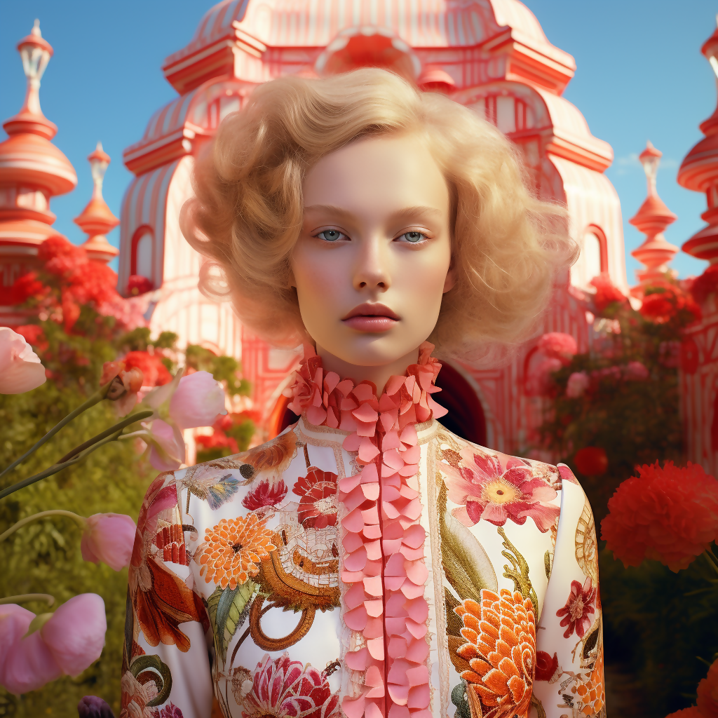 Style: Surreal editorial, architectural fantasy, botanical couture