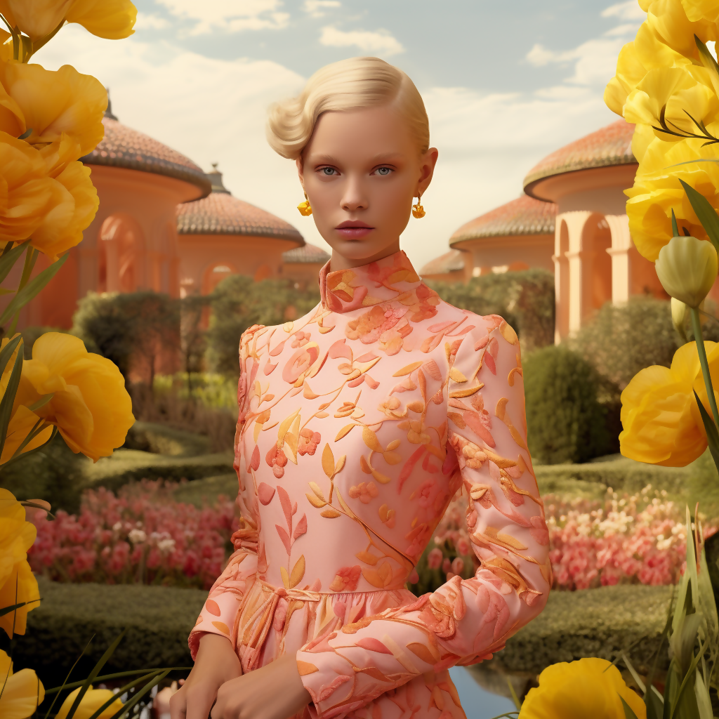 Style: Surreal editorial, botanical pop, conceptual elegance