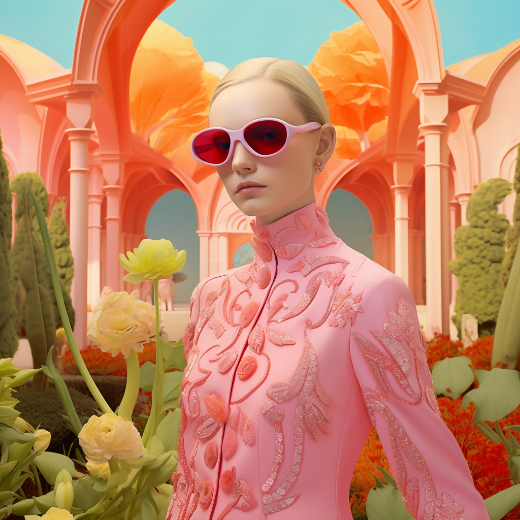 Style: Surreal editorial, botanical fantasy, architectural elegance
