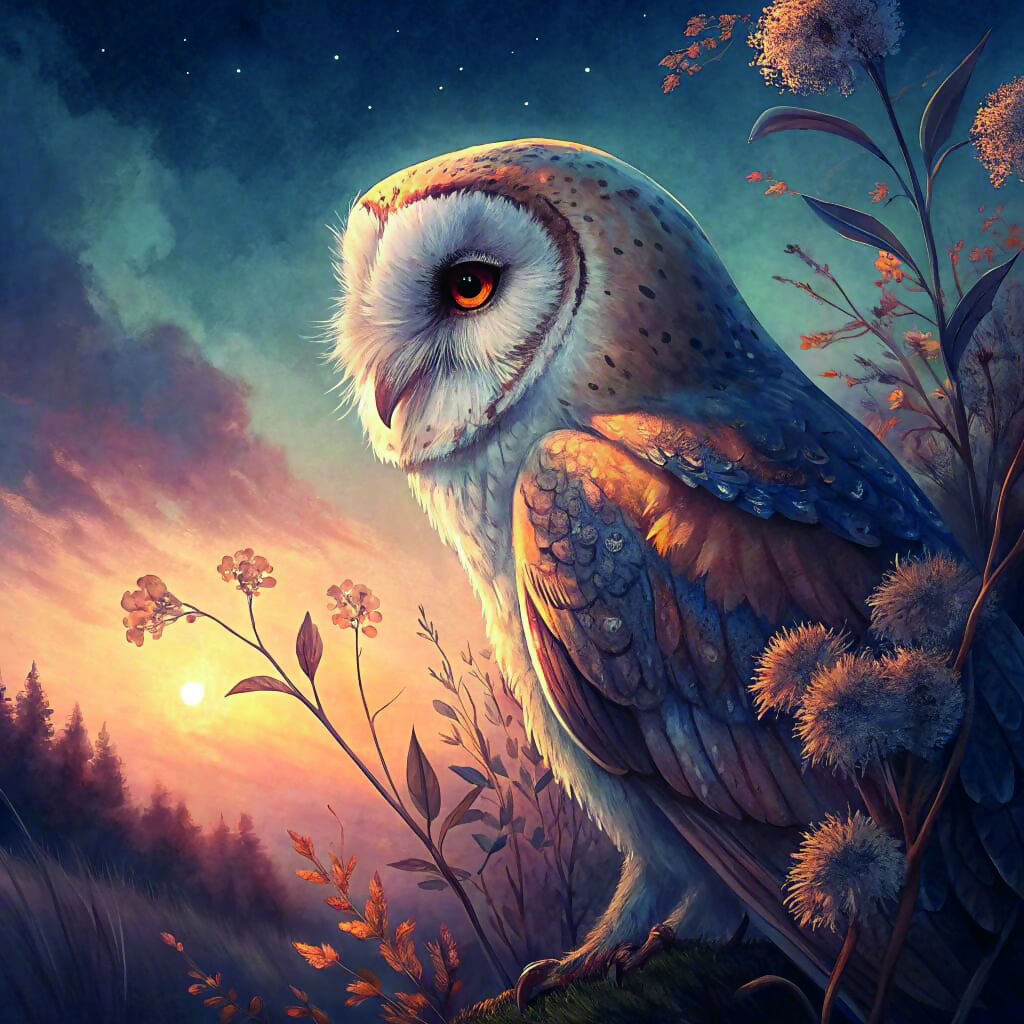Mysterious Barn Owl in Twilight Hues - Majestic Oil Painting Style