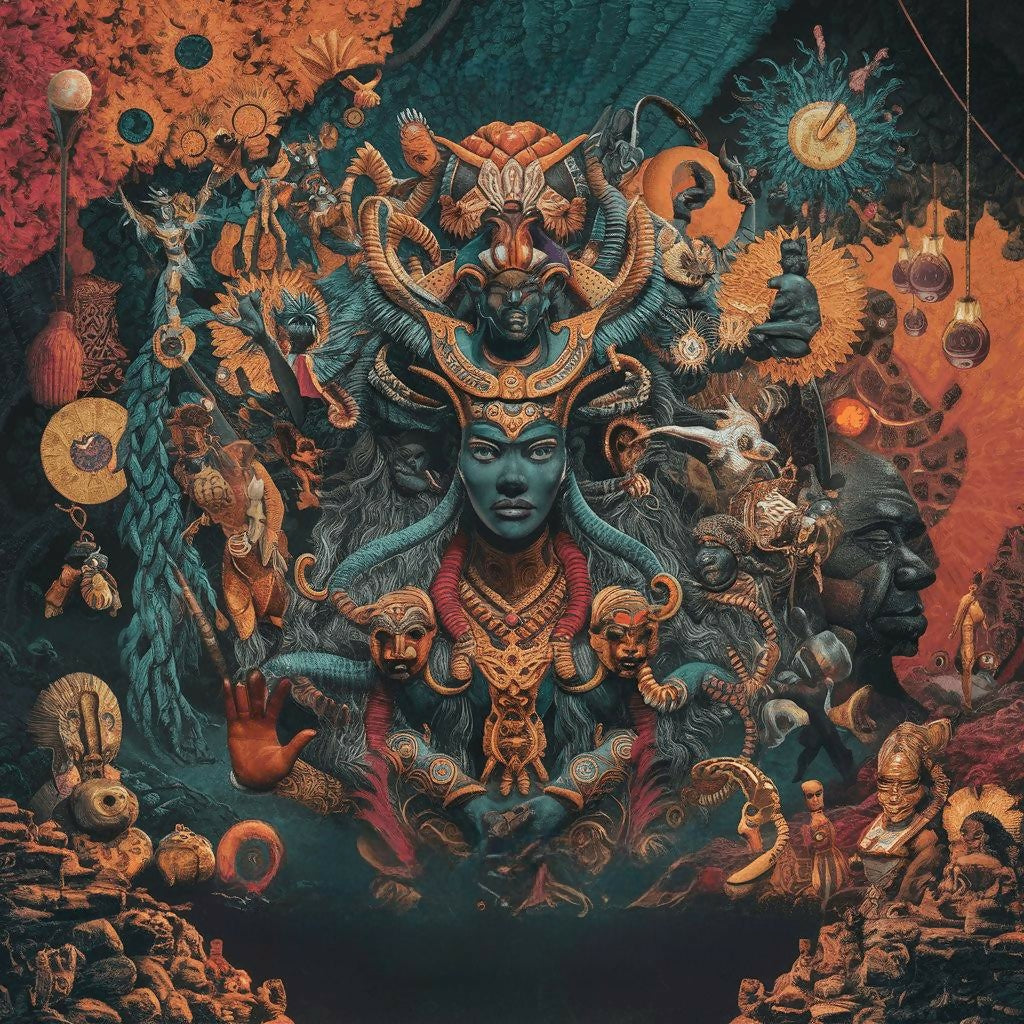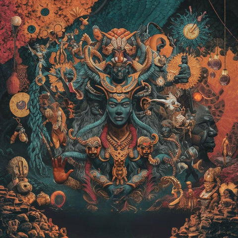 Dive into the mesmerizing world of Mystical Realms, where ancient mythologies and fantastical creatures come alive in a stunning tapestry of colors and details. This captivating art print features a central figure radiating power and wisdom, surrounded by an array of mythical beings and symbolic elements. Perfect for adding a touch of mystique and wonder to your space, Mystical Realms is a celebration of imagination and artistic brilliance.