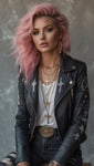 Name: Skye “Nova” Rose Age: 33 Vibe: Wild free spirit with a calm exterior. A blend of a small-town outlaw, a rebel angel, and a celestial wanderer. A woman who’s seen the wild side of life and found peace in Christ. She walks through life with a quiet strength but has the heart of a wild free spirit that refuses to be tamed. Bold yet graceful, she combines faith with rebellion, creating a presence that is both calming and electrifying. Life: Skye grew up in a small town, the daughter of a preacher and a cowboy, who taught her to see both the beauty and the struggle in the world. She now runs a creative ministry that helps young women discover their faith while embracing their individuality. In her downtime, she’s either riding her motorcycle across the backroads or painting the night sky with a brush, finding God in both the stars and the dirt beneath her boots. She’s a blend of loud worship, soft prayers, and a fierce love for her people. Style: A combination of pink and black outlaw country style with a celestial twist. She wears vintage graphic tees with scripture, black leather jackets adorned with silver crosses, and her trusty black boots—worn but strong. Her hair is a mix of messy curls, sometimes dyed a subtle pink, and she rocks bold eyeliner with a calm, natural glow. Gold jewelry with scripture inscribed, layered necklaces, and studded rings add to her look, along with a celestial touch—stars, moons, and crosses tucked into her wardrobe. Quote: “I’m a wild one who