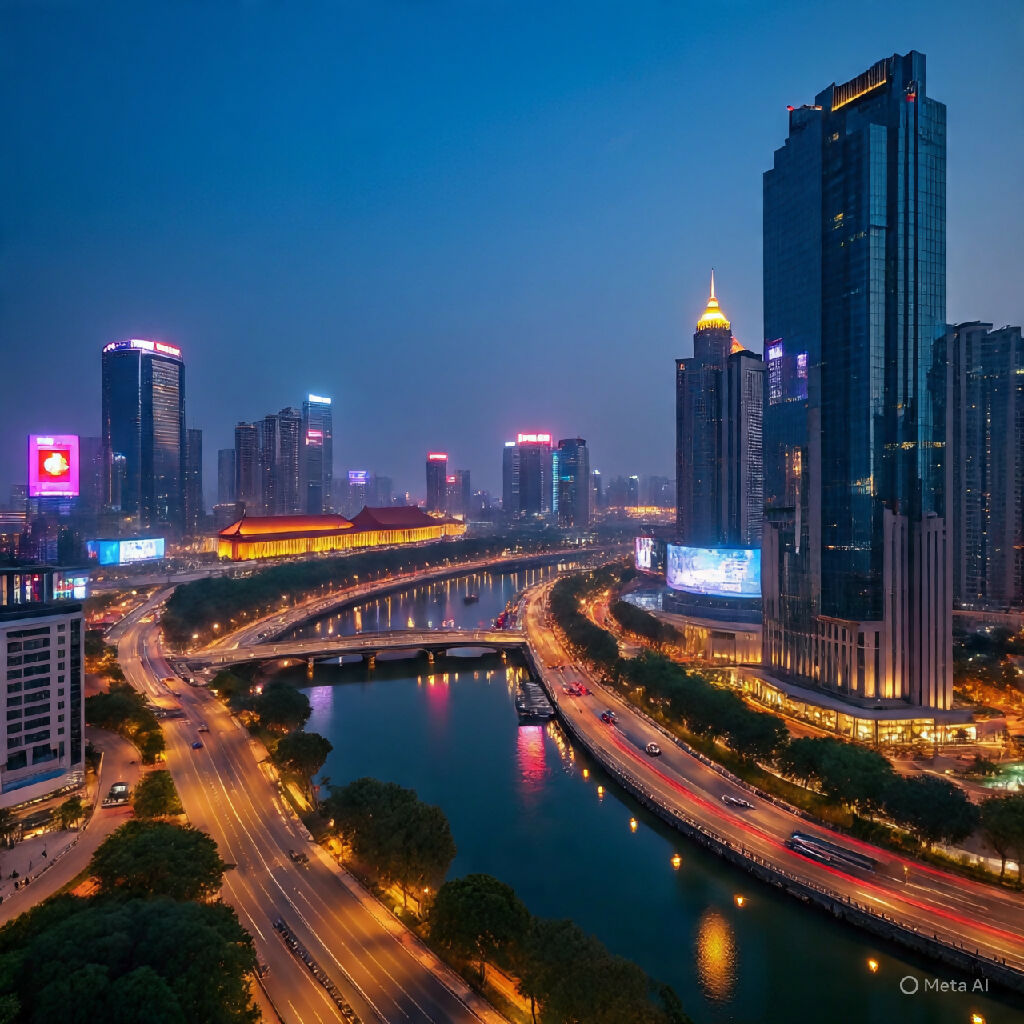 Nanjing City Nightscape – Futuristic Skyline & River View