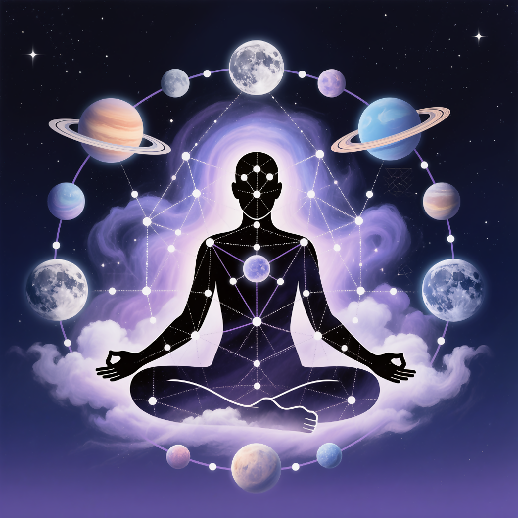 Nebula Within invites you into an inner universe where geometric symmetry and cosmic fluidity converge. A tranquil figure sits amidst soft celestial hues and interstellar patterns, illuminated by shimmering particles—ideal for elevating any space with introspective beauty and a touch of astral magic.