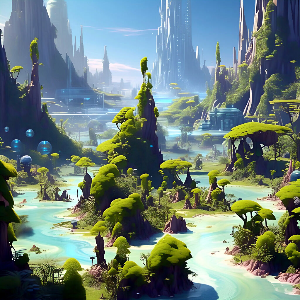 Step into Neo Eden, a visionary AI-generated landscape where nature and technology coexist in breathtaking harmony. Towering, sleek skyscrapers rise in the distance, symbolizing advanced civilization, while the foreground bursts with vibrant greenery, dome-shaped trees, and winding turquoise waterways. Scattered glowing orbs hint at mysterious energy sources, adding a touch of sci-fi wonder. This artwork evokes a utopian future—ideal for collectors, dreamers, and interior designers seeking a bold statement piece. Perfect for wall art, canvas prints, and digital displays, Neo Eden invites viewers to imagine a world where innovation and ecology thrive together.