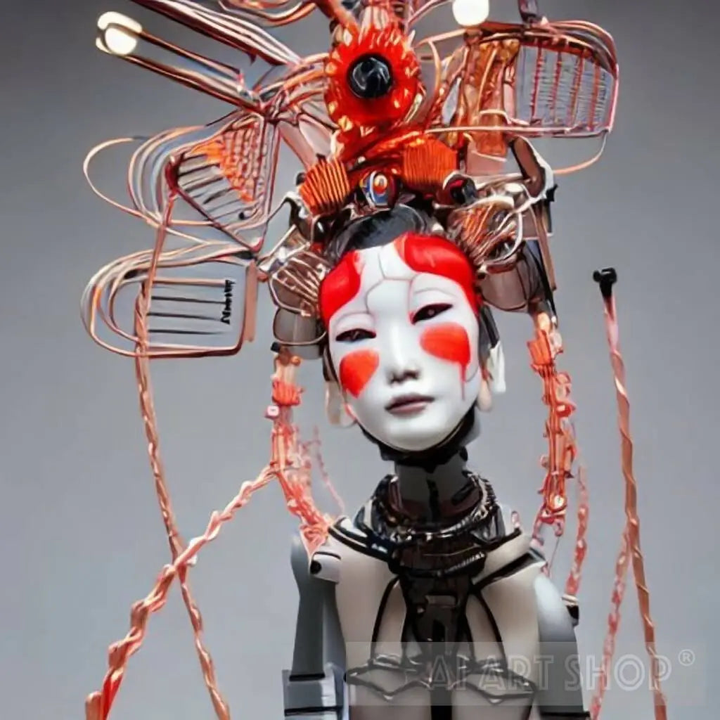 17084358 - Unique one-off cybernetic model with neon hair sculpture and orange sunflower