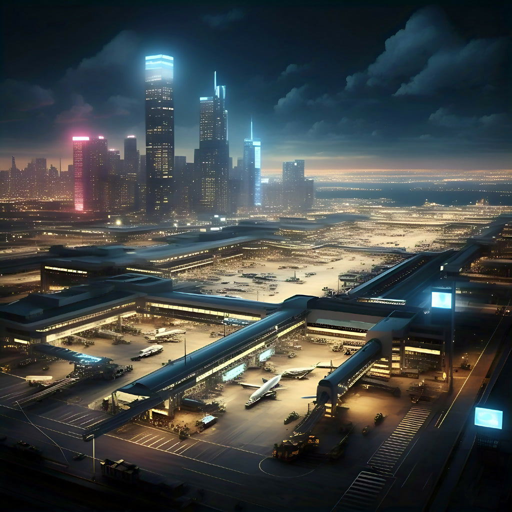 Neon Horizon: Futuristic Airport Metropolis