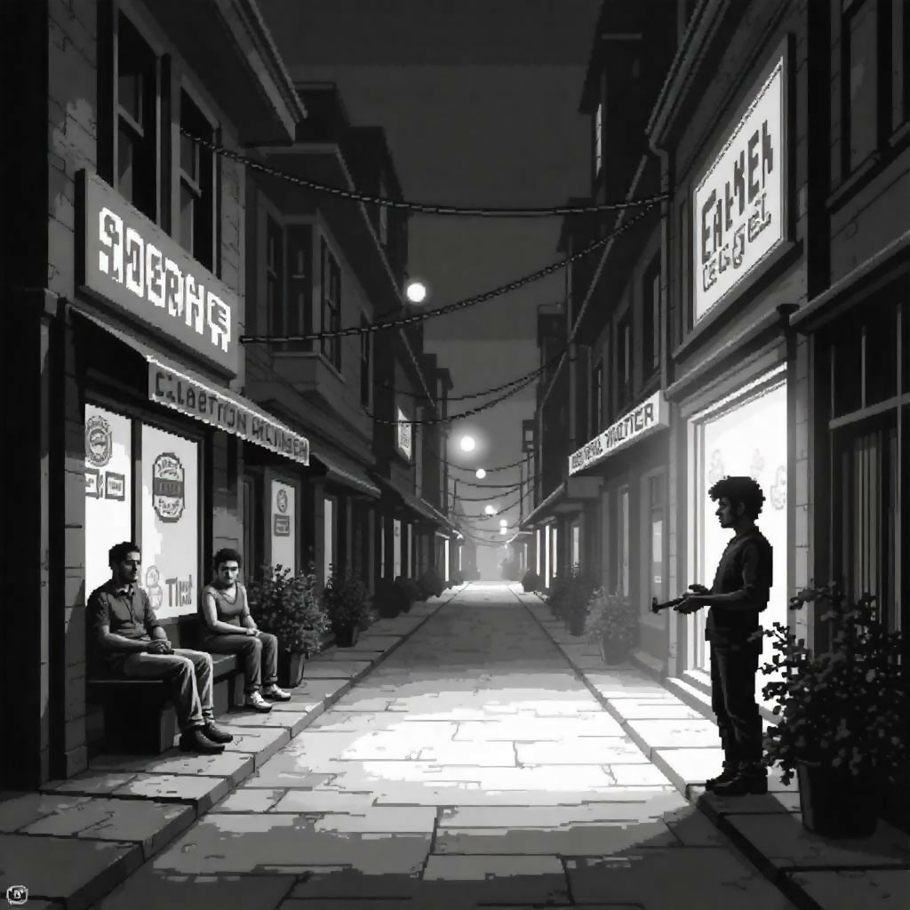 Immerse yourself in the mysterious charm of this black-and-white cyberpunk alleyway. This AI-generated artwork captures the essence of a quiet yet intense urban night, where dim streetlights, neon signs, and shadowy figures create a cinematic noir atmosphere. A lone figure stands in the glow, adding intrigue and storytelling to the scene.