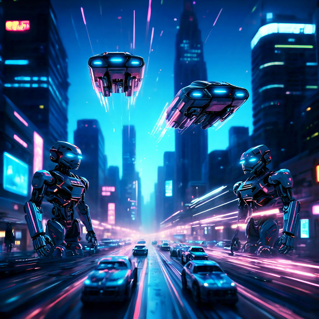 Step into the electrifying heart of a future metropolis with Neon Sentinels: Cyber Street Pulse. This AI-generated artwork captures a high-speed moment in a neon-drenched city where towering humanoid robots guard the streets and flying drones hum above the skyline. Inspired by the idea of urban evolution driven by artificial intelligence, this piece imagines a world where machines and humans coexist in a symphony of light and motion. The glowing blue and pink hues evoke both mystery and momentum—perfect for collectors who crave futuristic energy and visual storytelling.