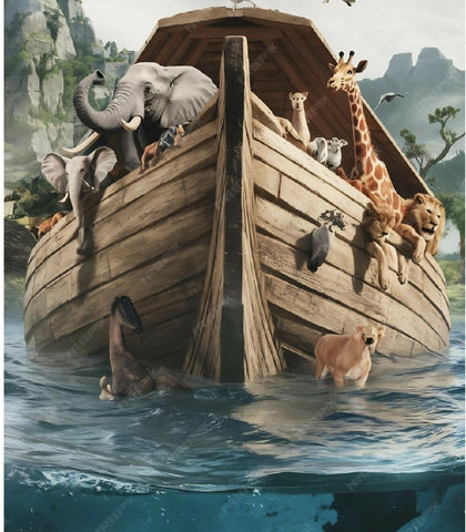The Bible story of Noah's ark is filled with faith, perseverance, and promise. Noah was a man who found great favor in God's eyes. The entire population of mankind had become evil and wicked and God decided to bring a flood to the earth to destroy everyone but Noah and his family. God told Noah to prepare an ark big enough to hold one male and one female from every kind of animal and creature. This is why many pictures depicting Noah's ark show animals coming two by two.