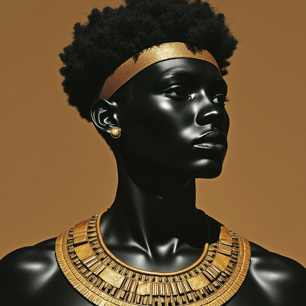 Drawing inspiration from ancient tribes in Africa. Celebrating African indigenous culture and heritage. Stunning imagery and photography with advanced AI tools. Nubia was an ancient region in northeastern Africa, primarily located along the Nile River valley, extending from southern Egypt to northern Sudan. It was home to several significant empires, the most notable being the Kingdom of Kush, which famously conquered Egypt during the eighth century BC under the rule of Piye. The name "Nubia" itself became common during the Roman period, with some links to the ancient Egyptian word for gold.