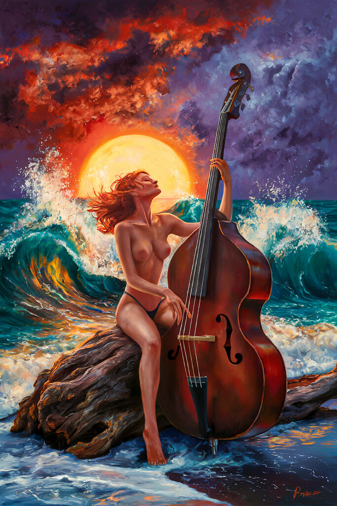Nude Art Painting of Naked Woman with Cello #1