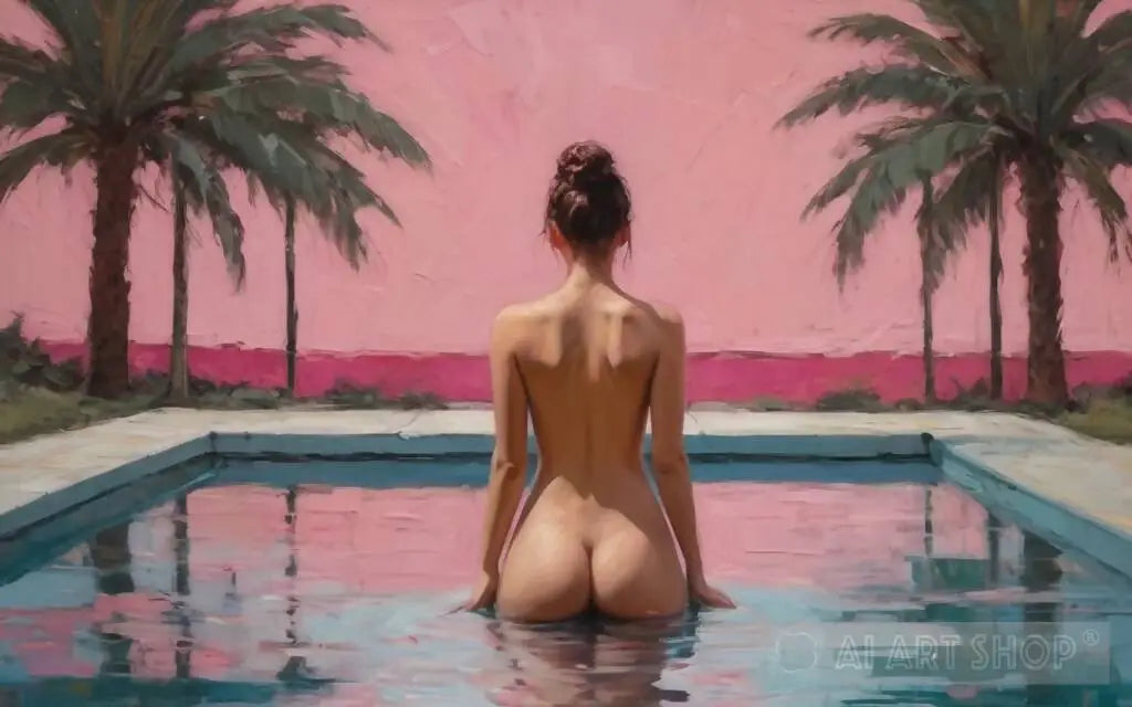 The play of light and shadow creates a sensual ambiance, inviting viewers to contemplate the beauty and vulnerability of the human body in its natural state. The scene evokes feelings of peace, purity, and sensual delight, offering a glimpse into the timeless allure of the human form in harmony with its surroundings.