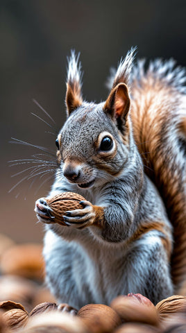 Bring the beauty of nature to life with this heartwarming AI-generated artwork featuring a cute squirrel joyfully munching on its favorite nuts. Capturing the charm of this tiny woodland creature with exquisite detail—from its fluffy tail to its bright, curious eyes—this artwork radiates warmth, playfulness, and the simple joys of nature.