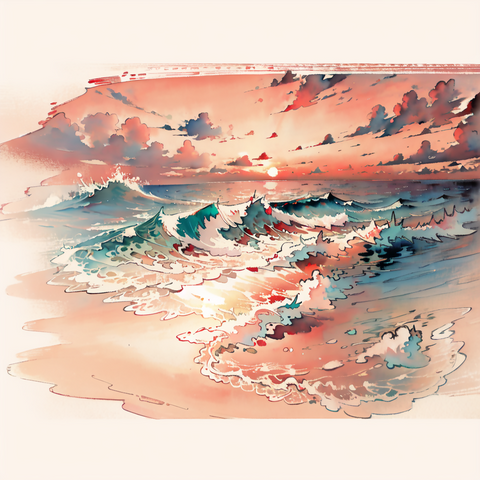 Ocean Sunset on Canvas is a 100% original AI painting, created to be sold at the AI Art Shop.