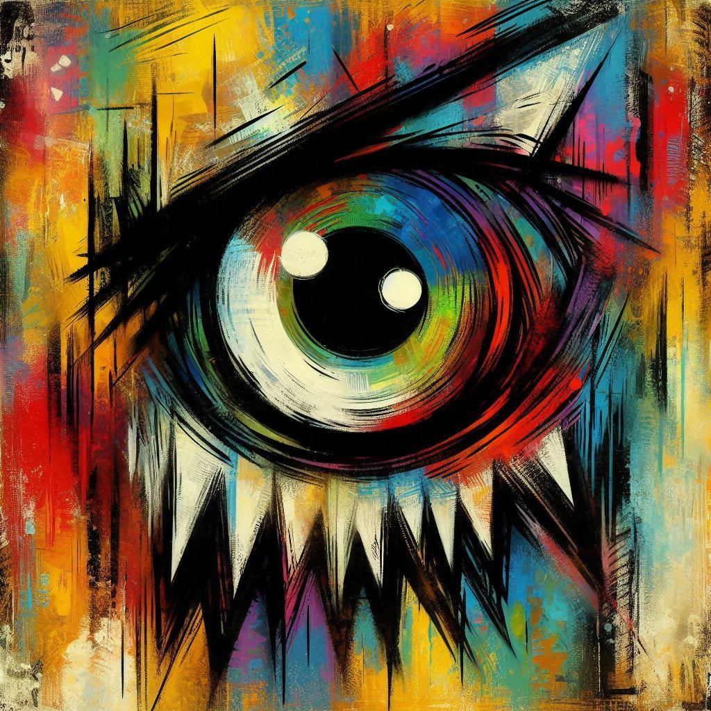 "In 'Oculus Obscura,' I harness the power of generative art to create a visceral, abstract experience that probes the boundaries of perception and emotion. The jagged teeth and distorted form of the eye serve as a metaphor for the complex interplay between technology and human consciousness, inviting viewers to confront the unease and fascination that arises from this intersection."