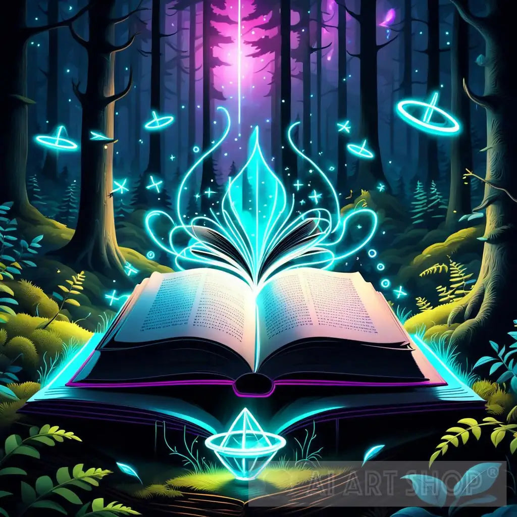 Open book in magical forest