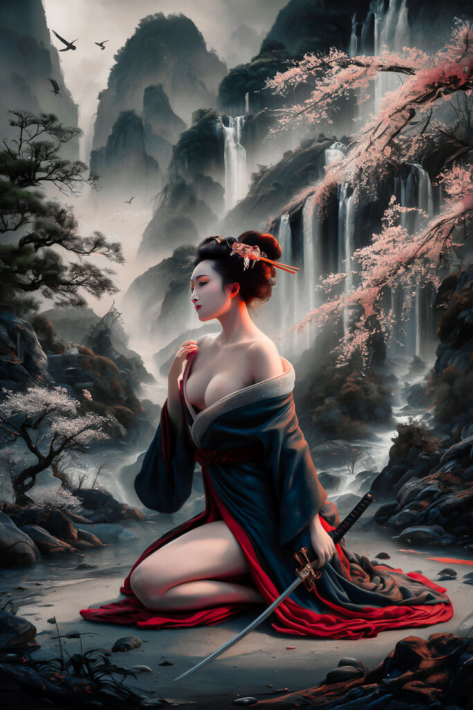 Oriental Oil Painting of Gorgeous Naked Geisha #4