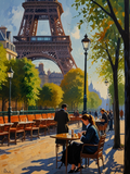 Renoir Style Paris Cafe Oil Painting Vintage Paris Street Cityscape Wall Art Print French Scenery Home Decor Antique City Scene Painting Gift