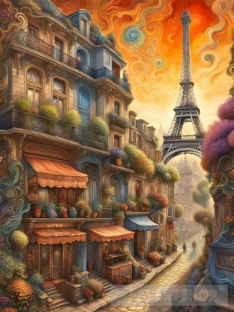 Paric city , retro cityscape painting
