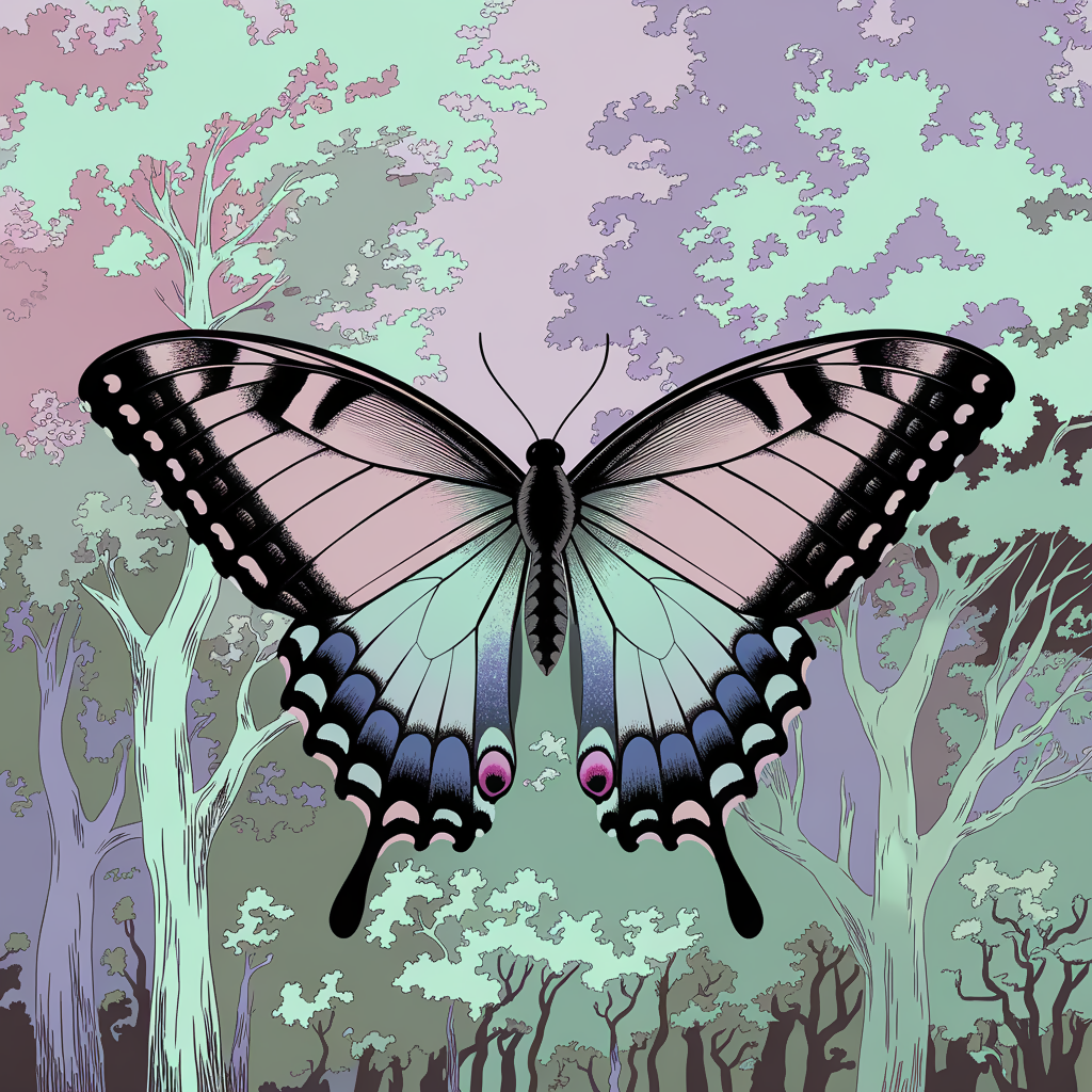 Its wings shimmer in shades of blush pink, lavender, mint, and baby blue, blending seamlessly in a gentle ombré effect. Subtle iridescent details give it a magical glow, while intricate patterns—perhaps delicate swirls, tiny stars, or lace-like accents—add to its whimsical charm. As it flutters gracefully through the air, surrounded by floating petals or soft sunlight, this pastel butterfly embodies serenity, beauty, and a touch of fairytale wonder.
