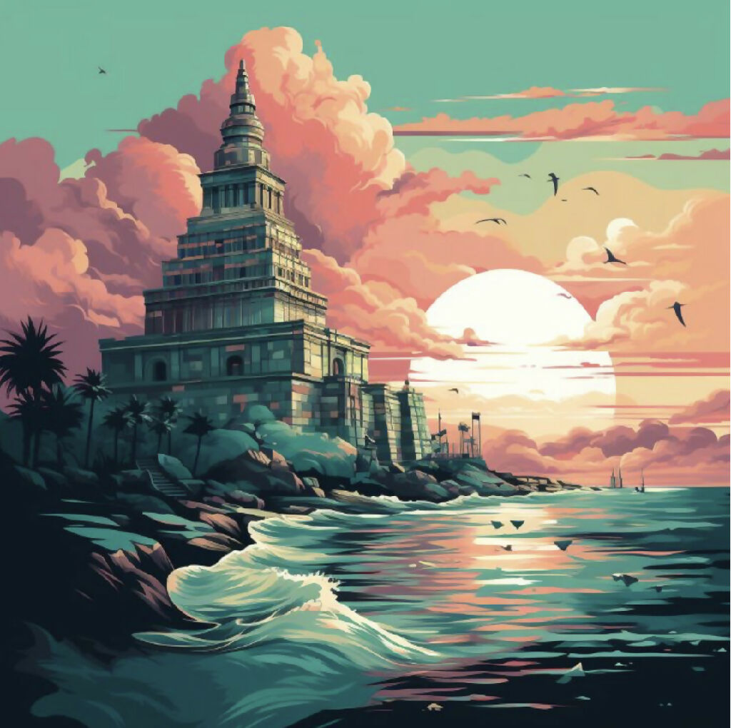 Faro de Alejandría is a piece of art that looks backto the ancient times.