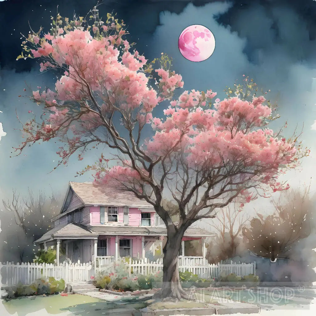 Pink house with tree