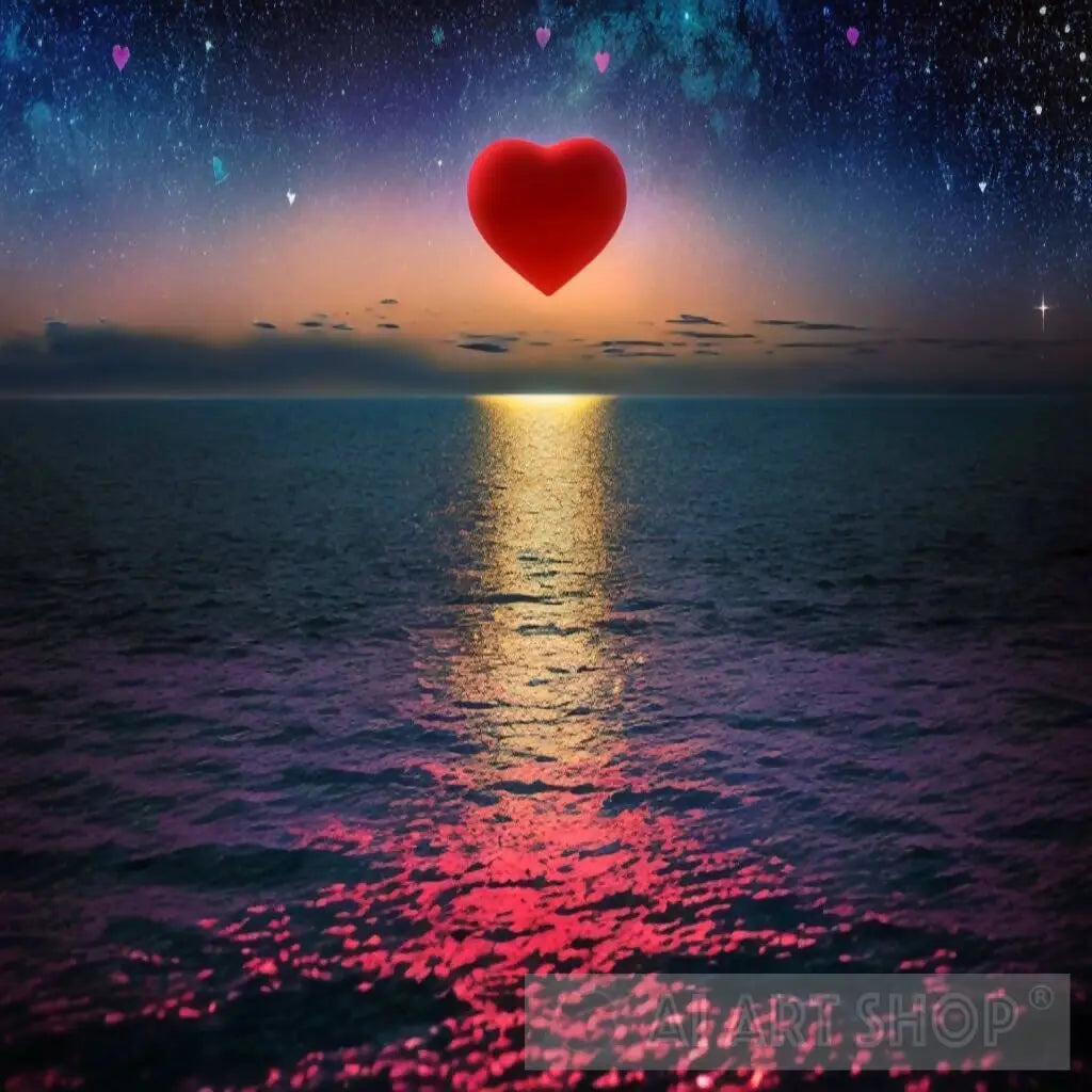 Planet, Landscape, heart, Valentine's Day, sea, sky, universe, love