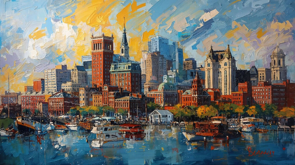 Abstract painting capturing the beauty and the charm of the city of Boston.