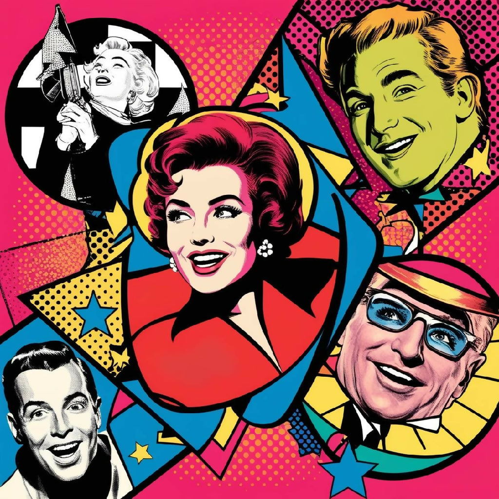"Pop Culture Heroes" is a captivating AI-generated pop art piece that celebrates the spirit of classic comic books and retro entertainment. This artwork features a collection of stylized characters, each with distinct personalities and vibrant designs. The use of bold colors, dynamic shapes, and iconic imagery creates a sense of nostalgia and fun, making it perfect for fans of pop culture and graphic design. Whether displayed as wall art or used for creative projects, this piece brings a touch of whimsy and energy to any space.