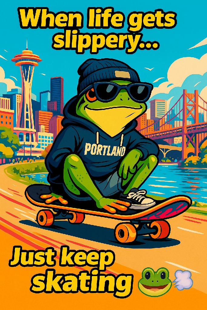 “Discover the charm of Portland’s urban wildlife with this AI-generated digital illustration of a cute frog. Set in a whimsical city environment, this artwork captures the playful spirit of nature blending with urban life. Perfect for prints, digital projects, and collectors of unique wildlife art. Bring this adorable Portland frog to your collection today!”