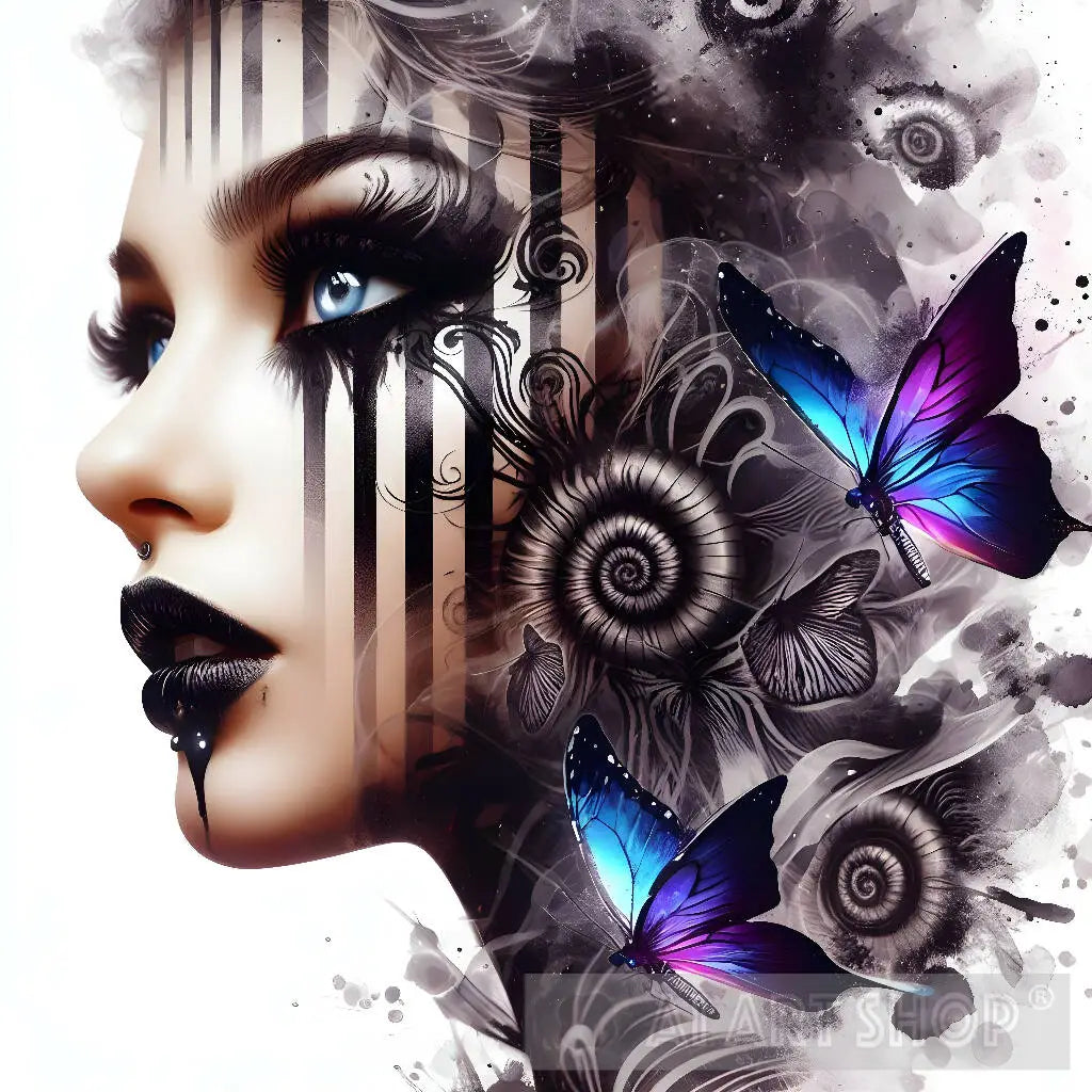 The "Portrait of a Woman with Butterflies" wall painting is a captivating masterpiece that seamlessly blends the ethereal beauty of a woman with the delicate grace of fluttering butterflies. The canvas comes to life with a harmonious fusion of colors, as the artist skillfully captures the essence of femininity and nature in this enchanting composition.