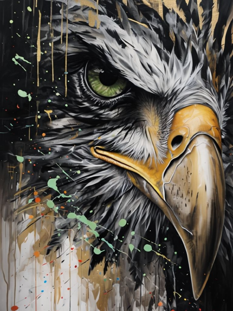 POWERFUL EAGLE CLOSE-UP STRIKING DIGITAL ART WITH SPLATTER EFFECTS