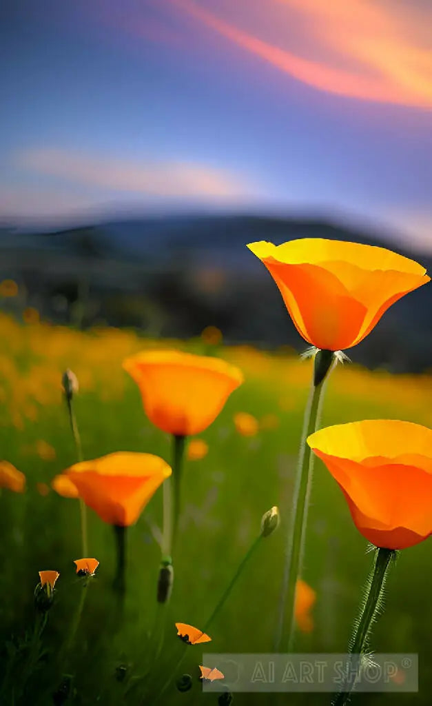 A sunset California Poppies portrait. Great for a computer wallpaper or background.
