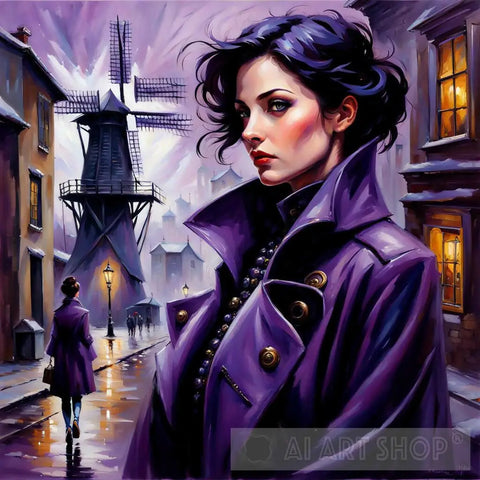 Purple female on street