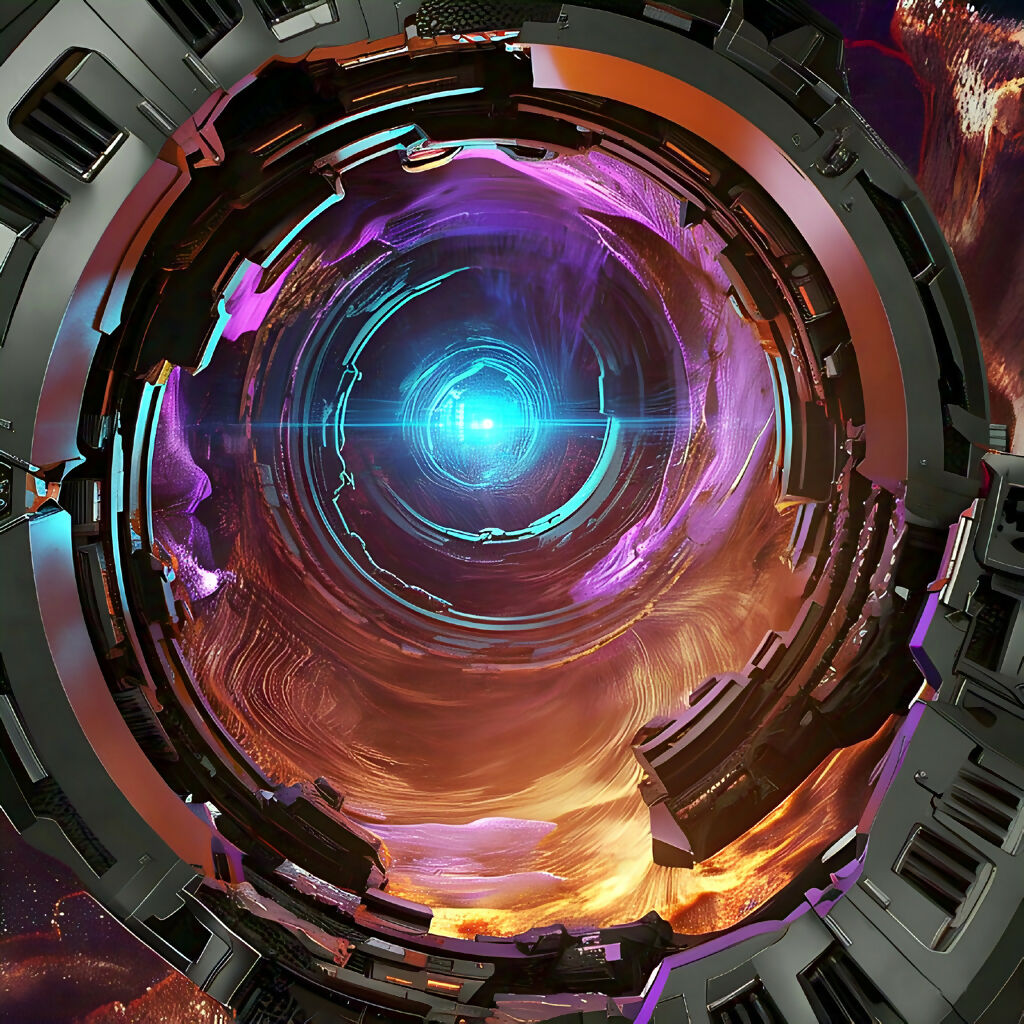 Step into the extraordinary with Quantum Portal Vortex, a captivating AI-generated artwork that blends vibrant motion with futuristic ambiance. This piece features a swirling vortex layered in luminous shades of purple, orange, and cobalt blue, evoking a sense of interdimensional travel. Metallic architectural elements spiral around the glowing core, lending depth and complexity that draws viewers into a sci-fi dreamscape. Perfect for tech-forward interiors or avant-garde collections, this image sparks imagination and awe in equal measure.