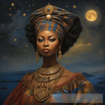 portrait of Queen Nzinga, the 17th-century queen of the Ndongo and Matamba kingdoms in Angola, wearing traditional African clothing and jewelry, with a background of a starry night sky