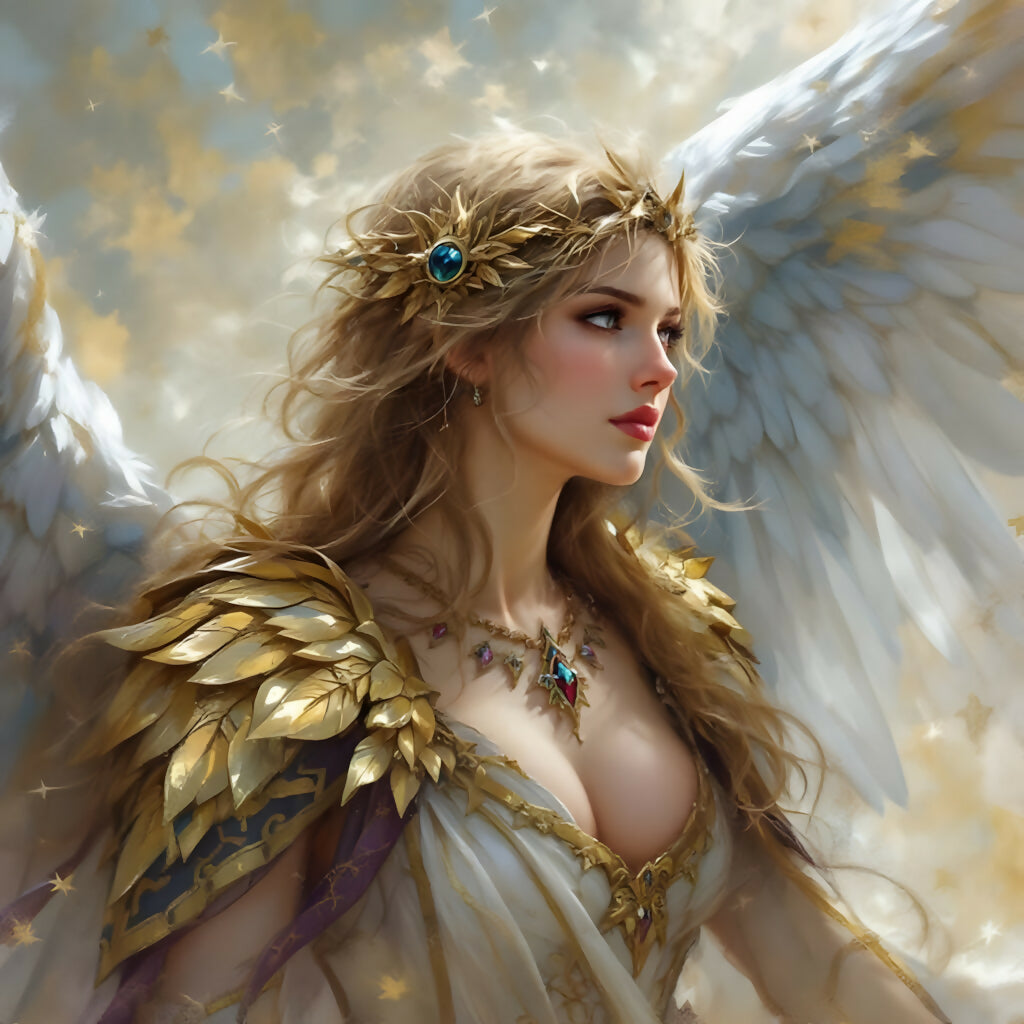 Step into the divine realm with Radiance of the Celestial Crown, a stunning high-resolution AI-generated artwork that captures the elegance and majesty of a celestial queen. With golden feathered armor, a crown adorned with sapphire brilliance, and flowing robes that shimmer like the heavens, this angelic guardian radiates divine strength and serenity. Perfect for those who seek beauty, fantasy, or the presence of heavenly beings in their space.