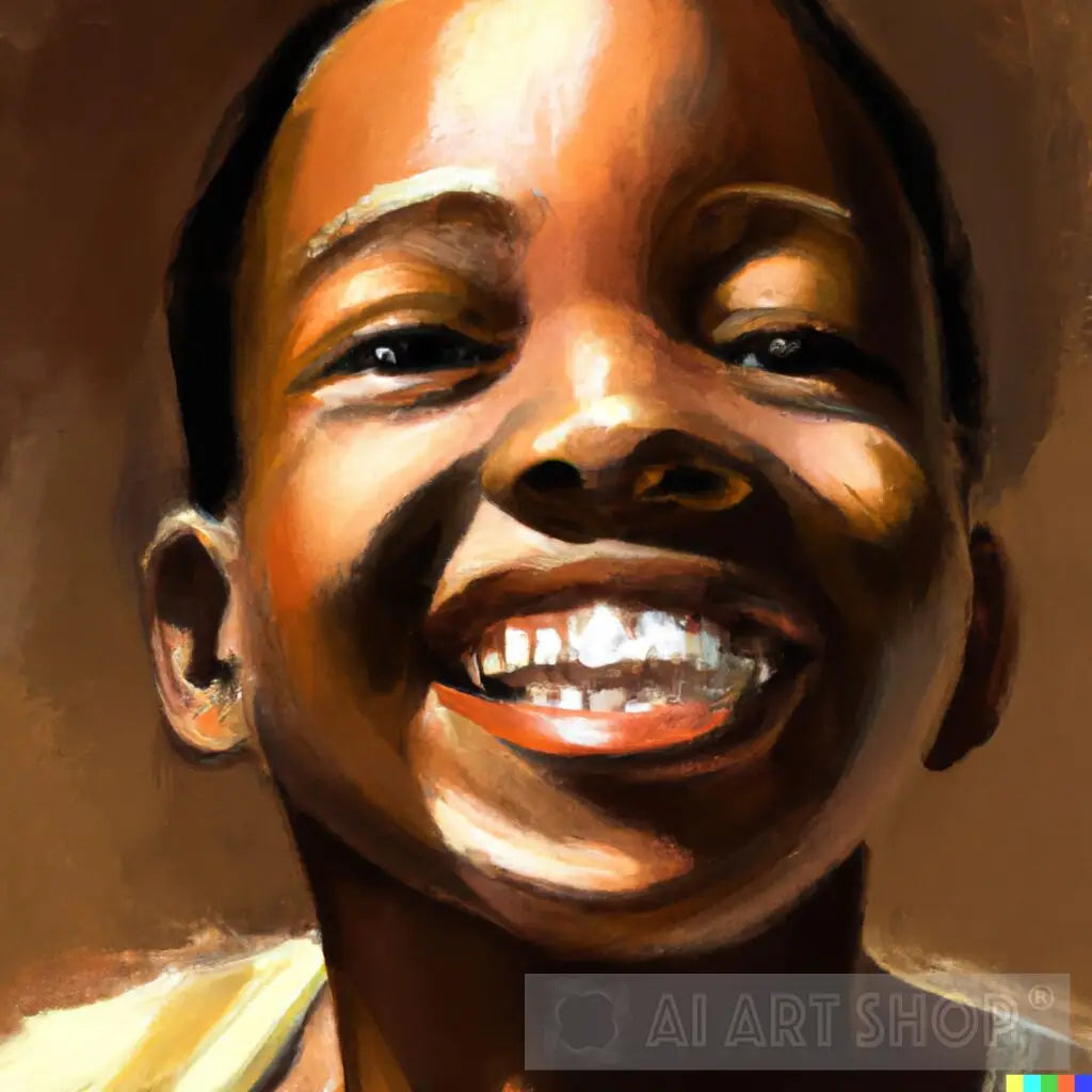 This vibrant digital painting captures the pure essence of joy through the beaming smile of a young child. The warm tones and dynamic brush strokes bring life to the child's expressive face, highlighting the genuine happiness that radiates from their smile. The use of light and shadow creates depth and emphasizes the emotional impact of the artwork, making it an uplifting and heartwarming piece