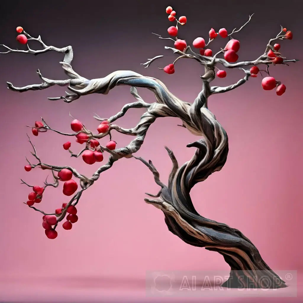 A unique and eye-catching sculpture of a tree with red berries. This sculpture would be a great conversation starter in any home or office.