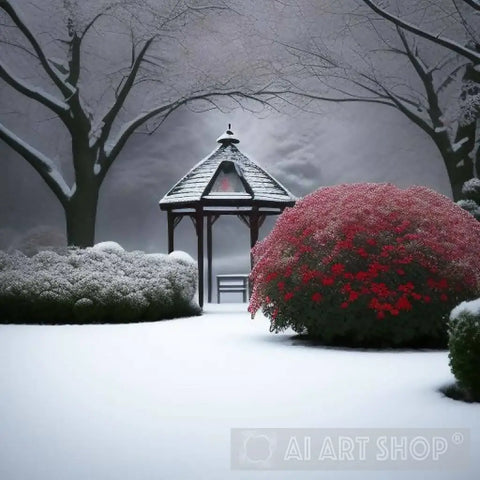 In this moment of quiet beauty, the garden becomes a sanctuary of peace and harmony, where the ephemeral beauty of the falling snow accentuates the timeless allure of the red roses, creating a scene of breathtaking elegance and grace.