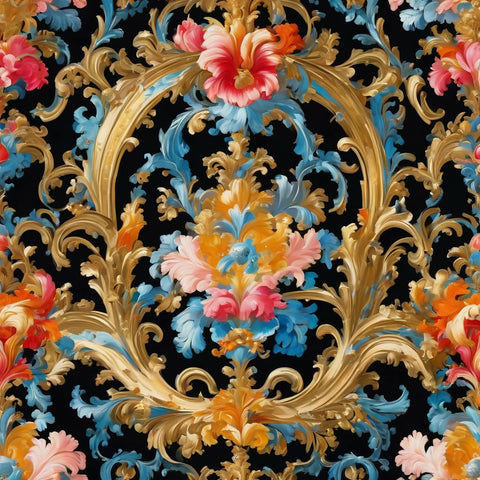 This abstract piece beautifully intertwines modern sensibilities with the timeless elegance of Rococo artistry. The canvas is a dance of fluid, curving lines and intricate patterns that evoke the ornate scrolls and floral motifs characteristic of 18th-century Rococo. Soft pastel hues dominate the palette, creating a gentle, dreamlike atmosphere. Splashes of gold add a touch of opulence, reminiscent of gilded Rococo mirrors and furnishings.