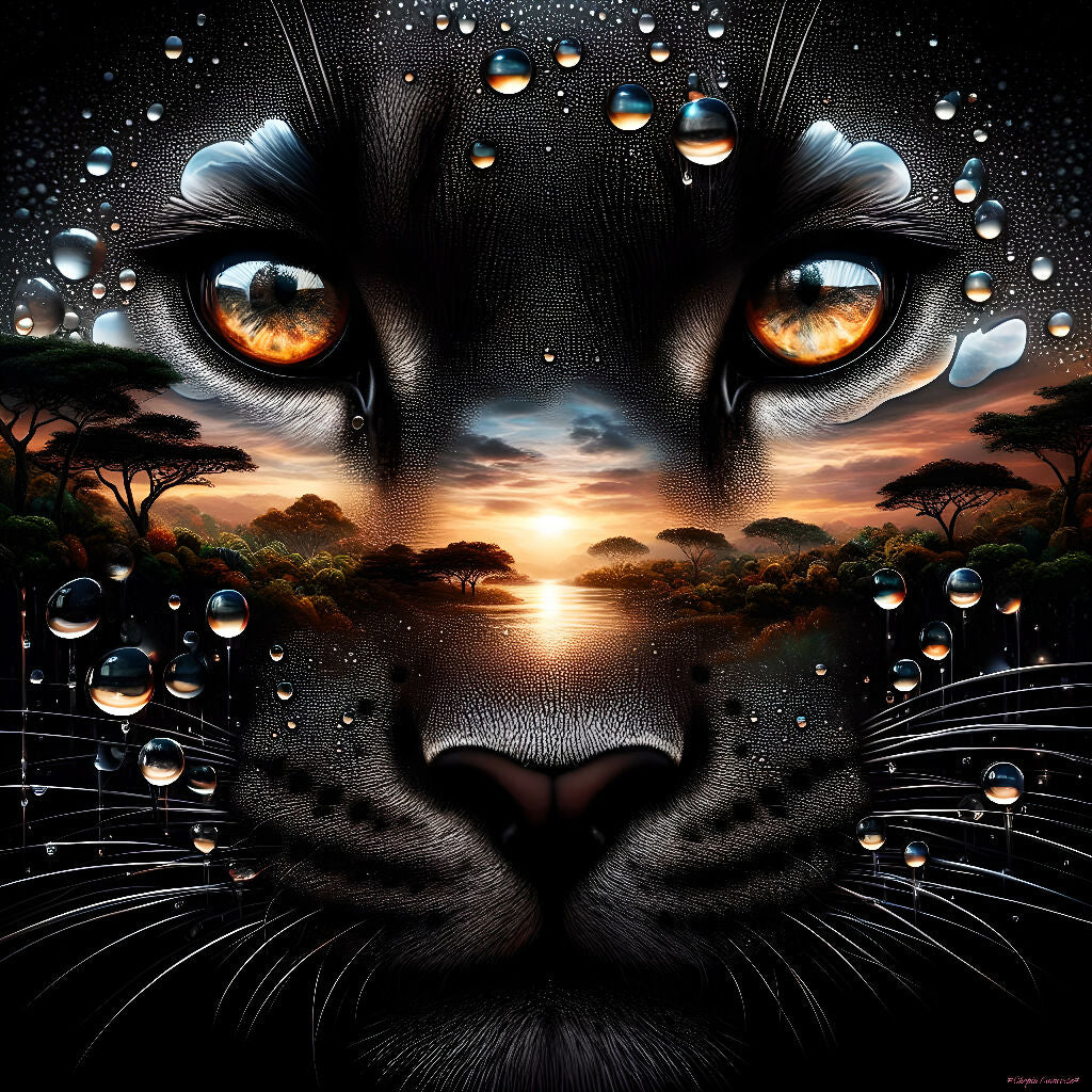 L'oeuvre évoque un sentiment de mystère et de puissance. Le regard intense de la panthère, combiné au paysage africain, suggère la force, la liberté et un lien profond avec la nature.