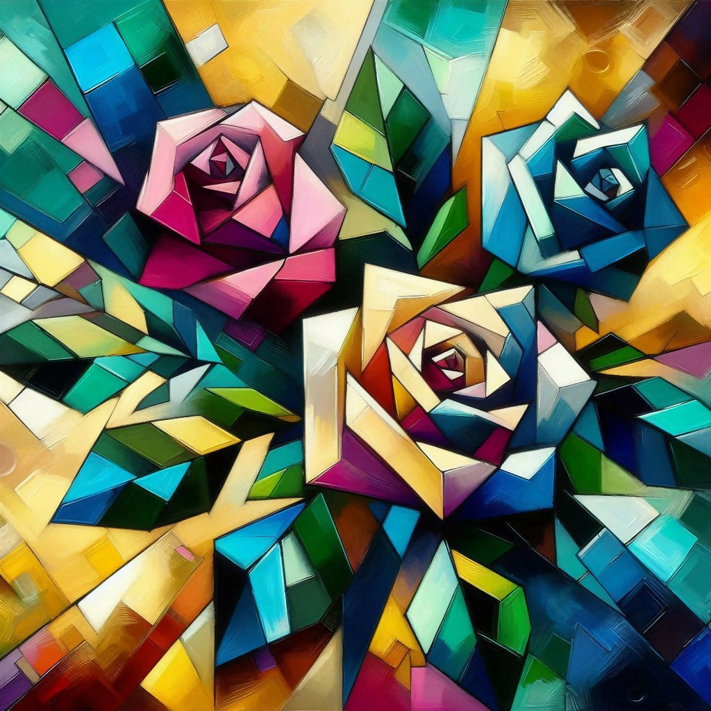Roses can be beautiful, they normally lose their colour and life after a certain time but with vibrant cubism, it lasts longer. Much like its jaggered thorns, the sharp appeal seems more pleasant
