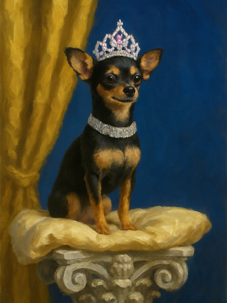 Royal Chihuahua Portrait: Crowned Dog Digital Art Print