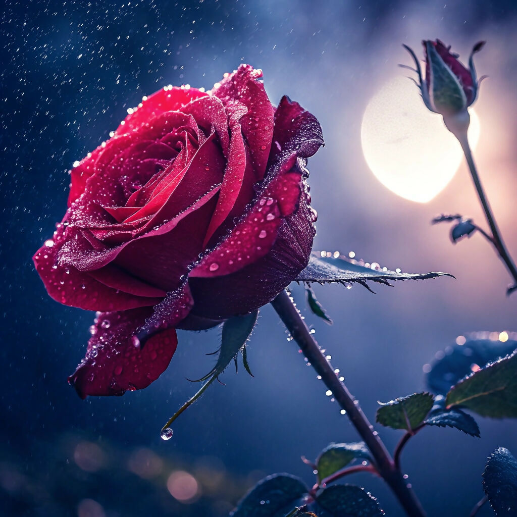 The image features a vibrant red rose adorned with glistening water drops, highlighting its delicate petals. This beautiful flower belongs to varieties like hybrid tea and floribunda, showcasing the captivating beauty found in outdoor gardens during winter. Its rich colour and fresh appearance epitomize the charm of nature.