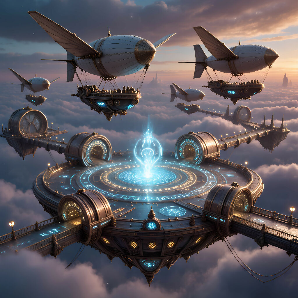 A harbor for magical airships floating on ancient runes.