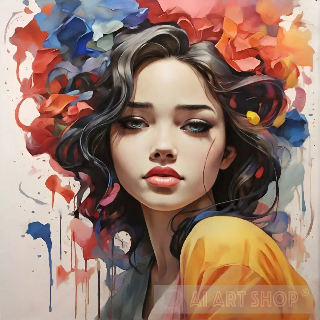 الرسم التشكيلي الذي يصف امرأة حزينة قد يتضمن تفاصيل معبرة عن الحزن، مثل ملامح الوجه الغائرة والعينين المعبرتين عن الألم. وقد تظهر الألوان بدرجات داكنة لنقل جوانب حزينة، مع استخدام الأشكال والخطوط لتعزيز الشعور بالاكتئاب والوحدة.